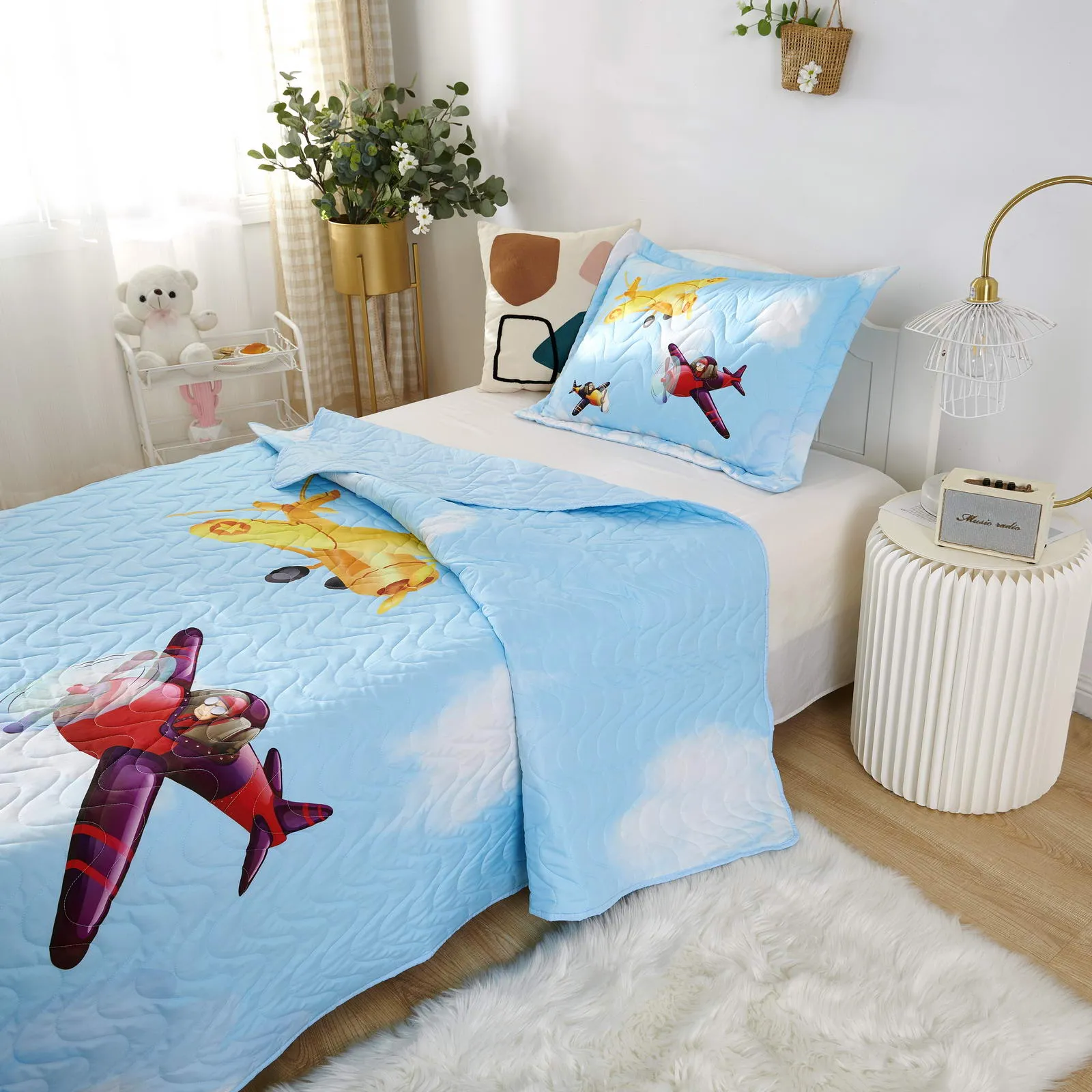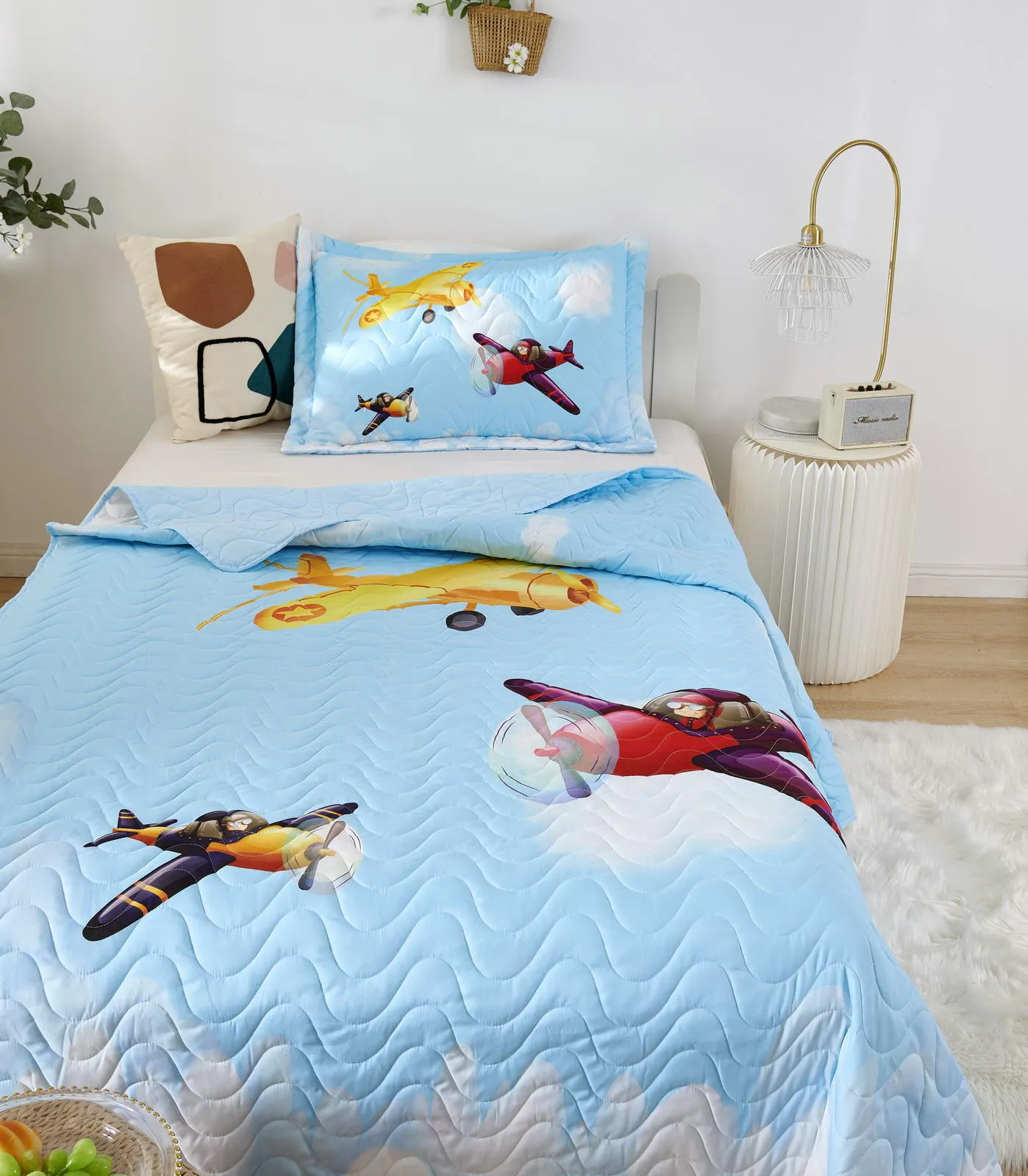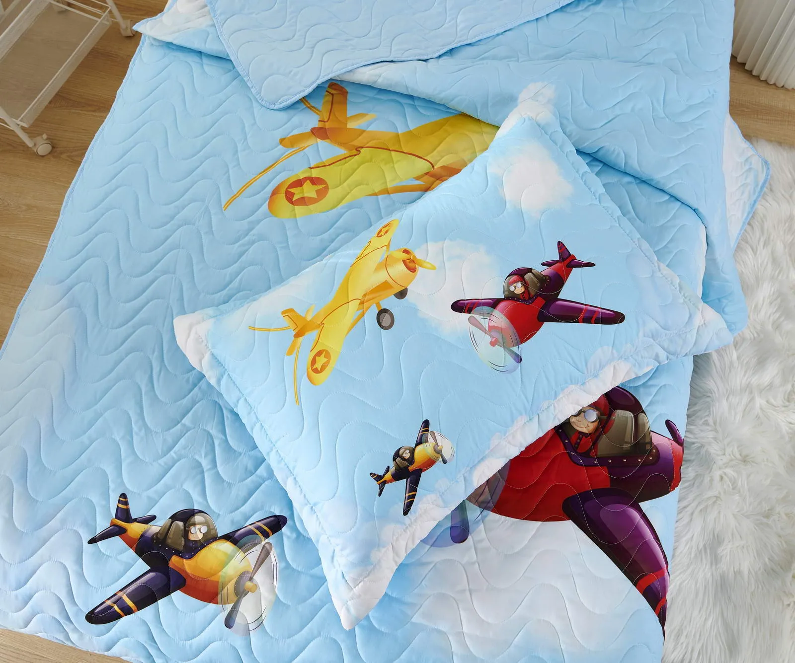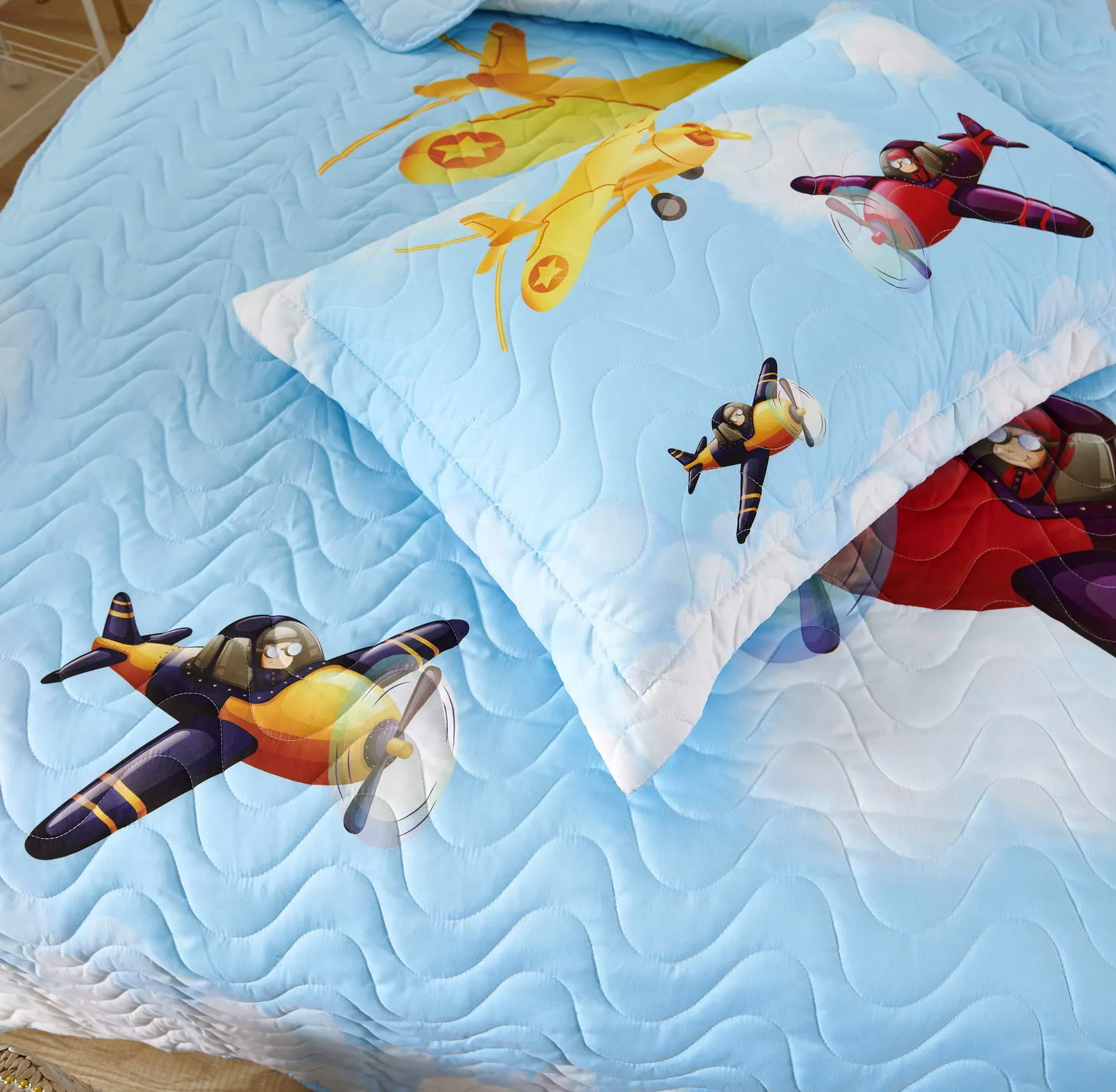 Детские покрывала - это особая забота об уюте и комфорте ребенка. Красивое, стеганое покрывало коллекции «Sunny day» придаст любой детской спальне яркую индивидуальность. Волнистые стежки делают изящные покрывала еще более выразительными и изящными. К ним в комплекте идут наволочки, у них есть интересная особенность, которая непременно понравится ребенку– небольшие ушки.