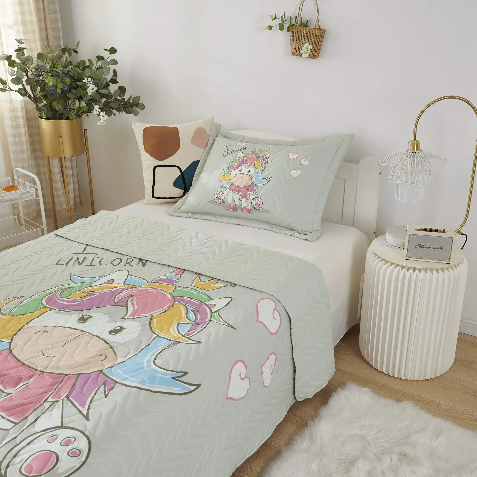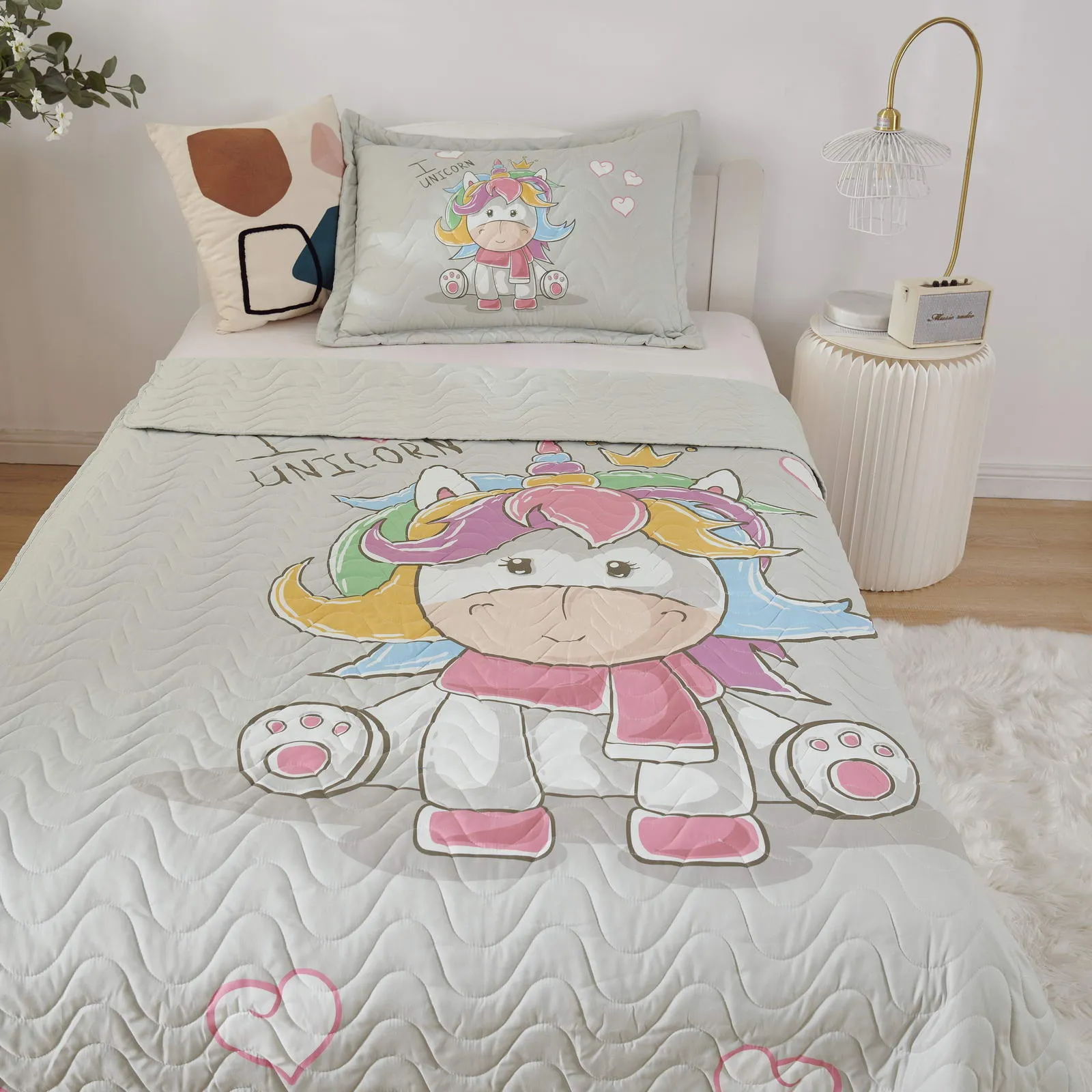 Детские покрывала - это особая забота об уюте и комфорте ребенка. Красивое, стеганое покрывало коллекции «Sunny day» придаст любой детской спальне яркую индивидуальность. Волнистые стежки делают изящные покрывала еще более выразительными и изящными. К ним в комплекте идут наволочки, у них есть интересная особенность, которая непременно понравится ребенку– небольшие ушки.