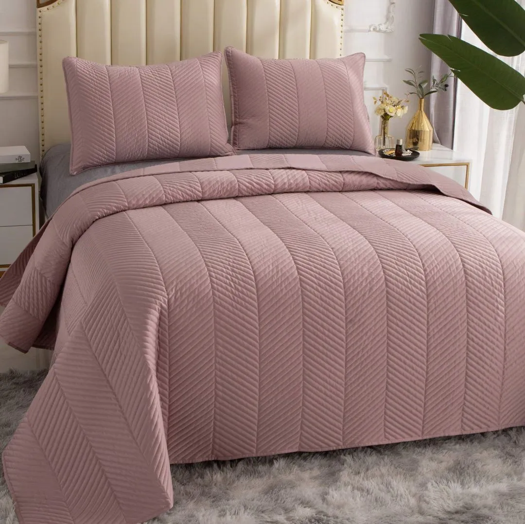Стёганое дышащее покрывало Адонис на 70% состоит из хлопка и на 30% из вискозы. Ткань изделия гладкая и приятная на ощупь. Декоративный кант и ритмичный «елочный» рисунок, выступающий над поверхностью, придают покрывалу игривый утонченный вид.